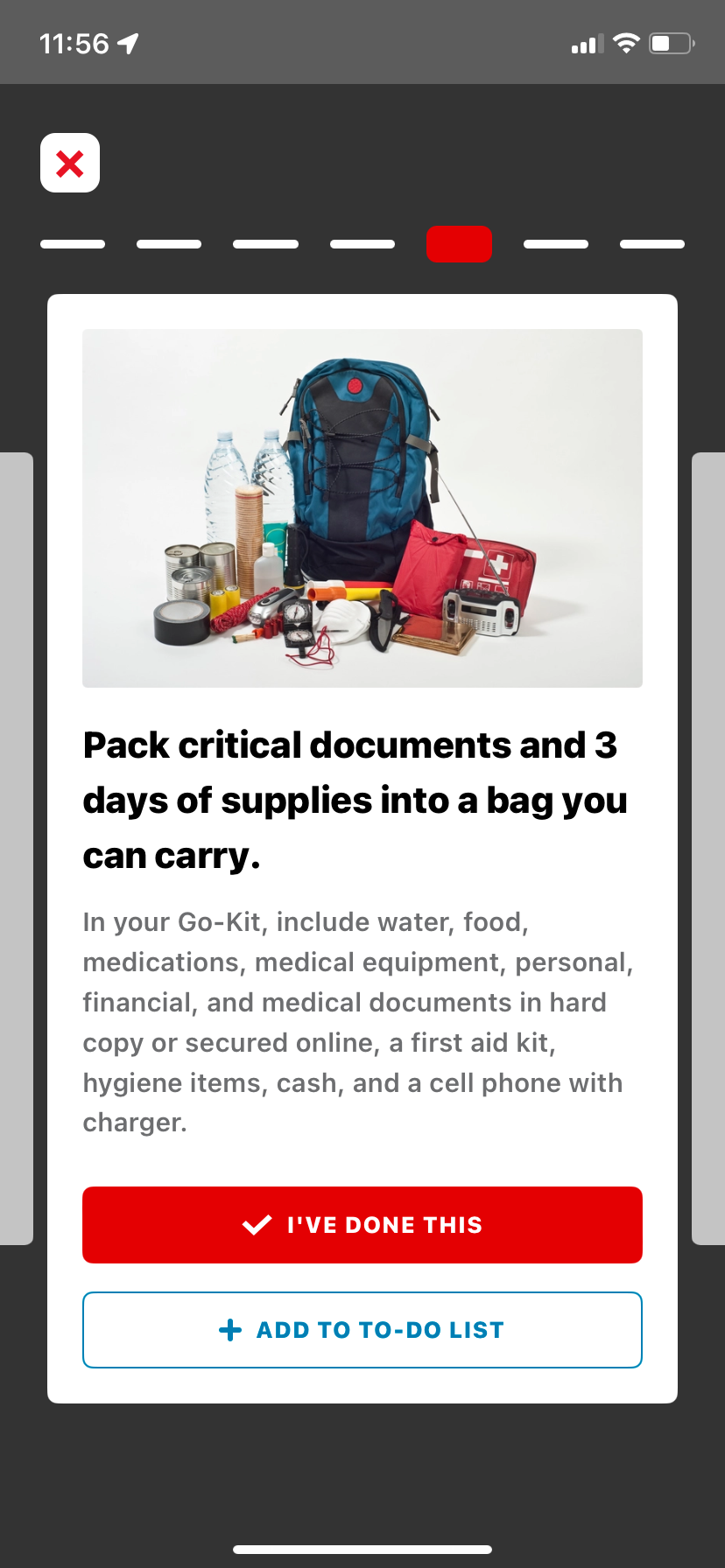 Engages families with interactive planning tools and gamification, like a "Preparedness Score," to motivate ongoing readiness efforts.